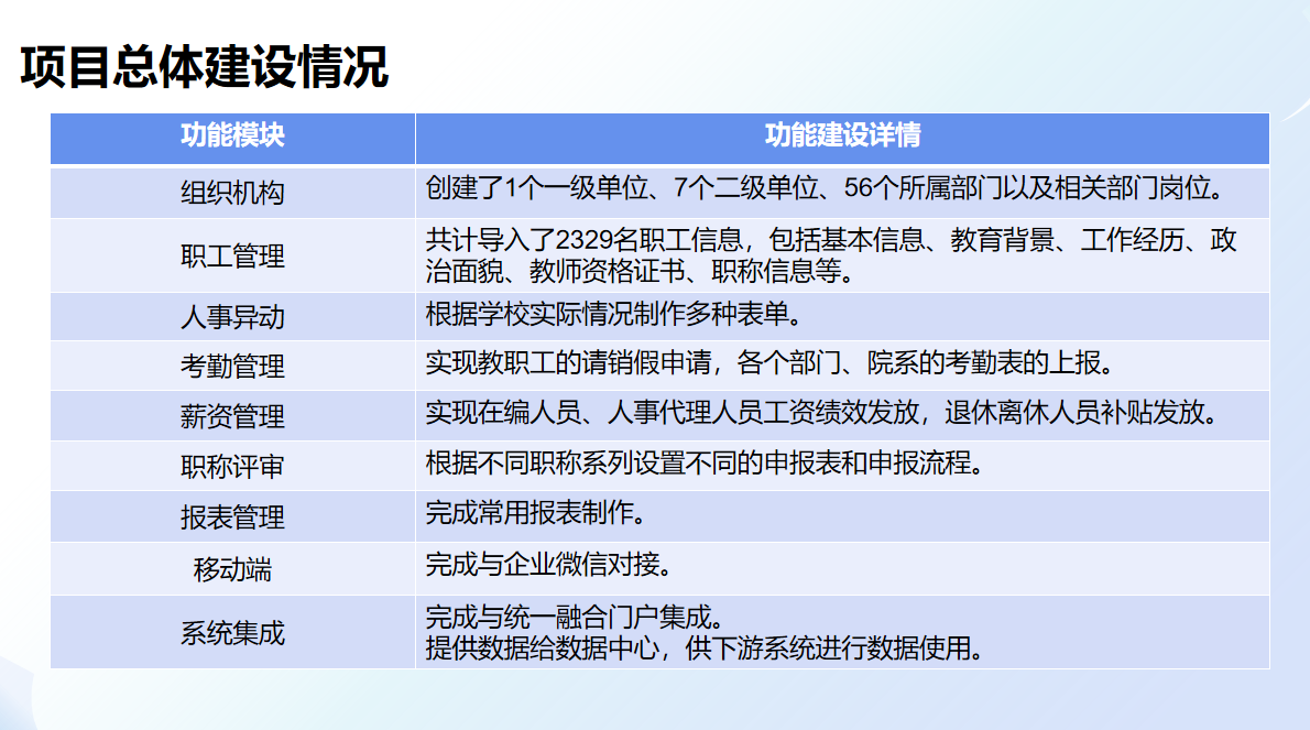 山西工程科技职业大学人力资源管理系统从完成招标到项目正式上线,前后仅历时4个月,便高效搭建起组织机构、职工管理、人事异动、考勤管理、薪资管理、职称评审等系统模块,实现学校“标准统一、流程规范、资源共享、信息全面、支撑决策、提升体验”的管理目标,为学校高质量发展注入了强大动力。